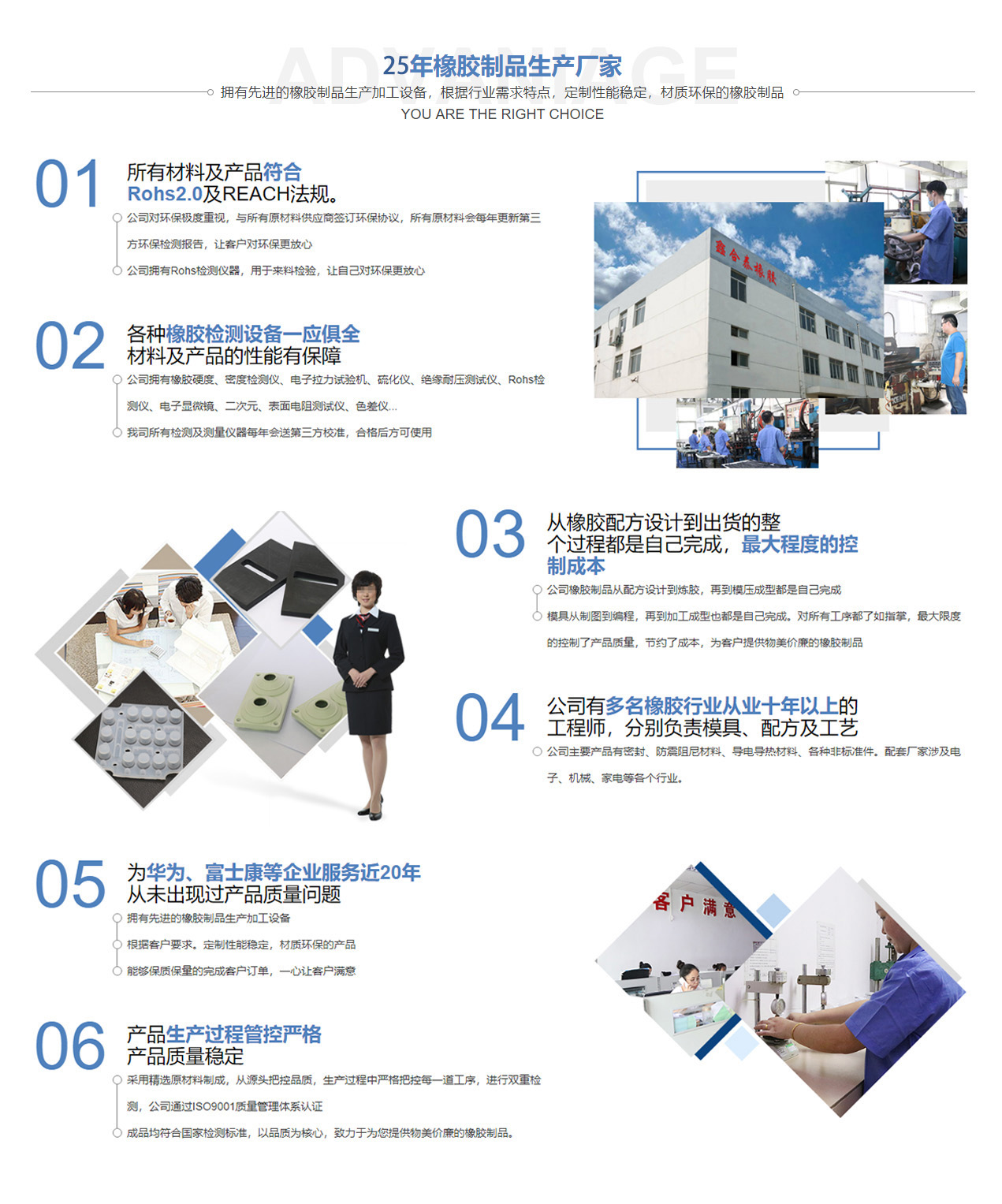 深圳市鑫合泰橡胶制品有限公司,1996年创立于深圳 , 国家高新技术企业, 是集研发、生产、销售、服务为一体的专业化橡胶制品供应商。公司经过二十多年的发展,拥有一支技术精湛、专业过硬的科技队伍。客户涉及电子、机械、家电等各个行业。